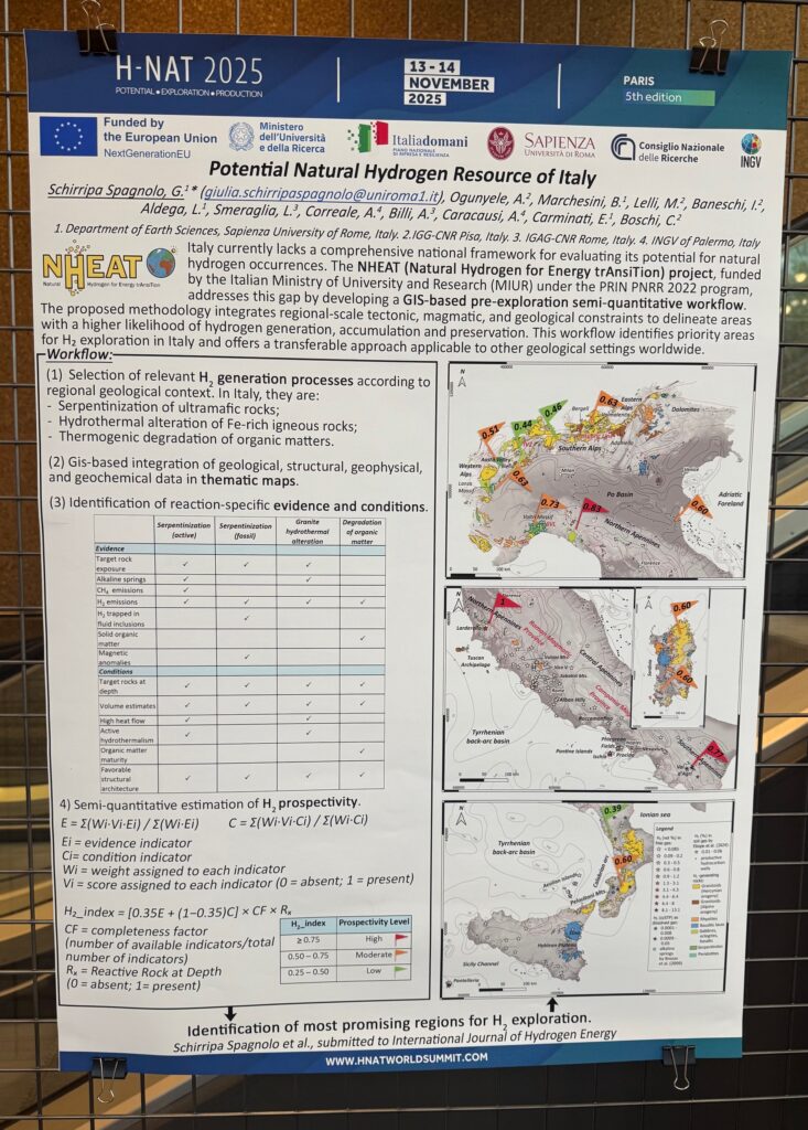 On November 13–14, we had the opportunity to participate in the H-NAT Summit 2025 in Paris, where we presented our work, “Potential Natural Hydrogen Resource of Italy.”